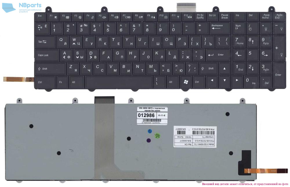 Клавиатура для ноутбука MSI GT72, GS60, чёрная, с белой подсветкой, без ушей, RU (MZ)